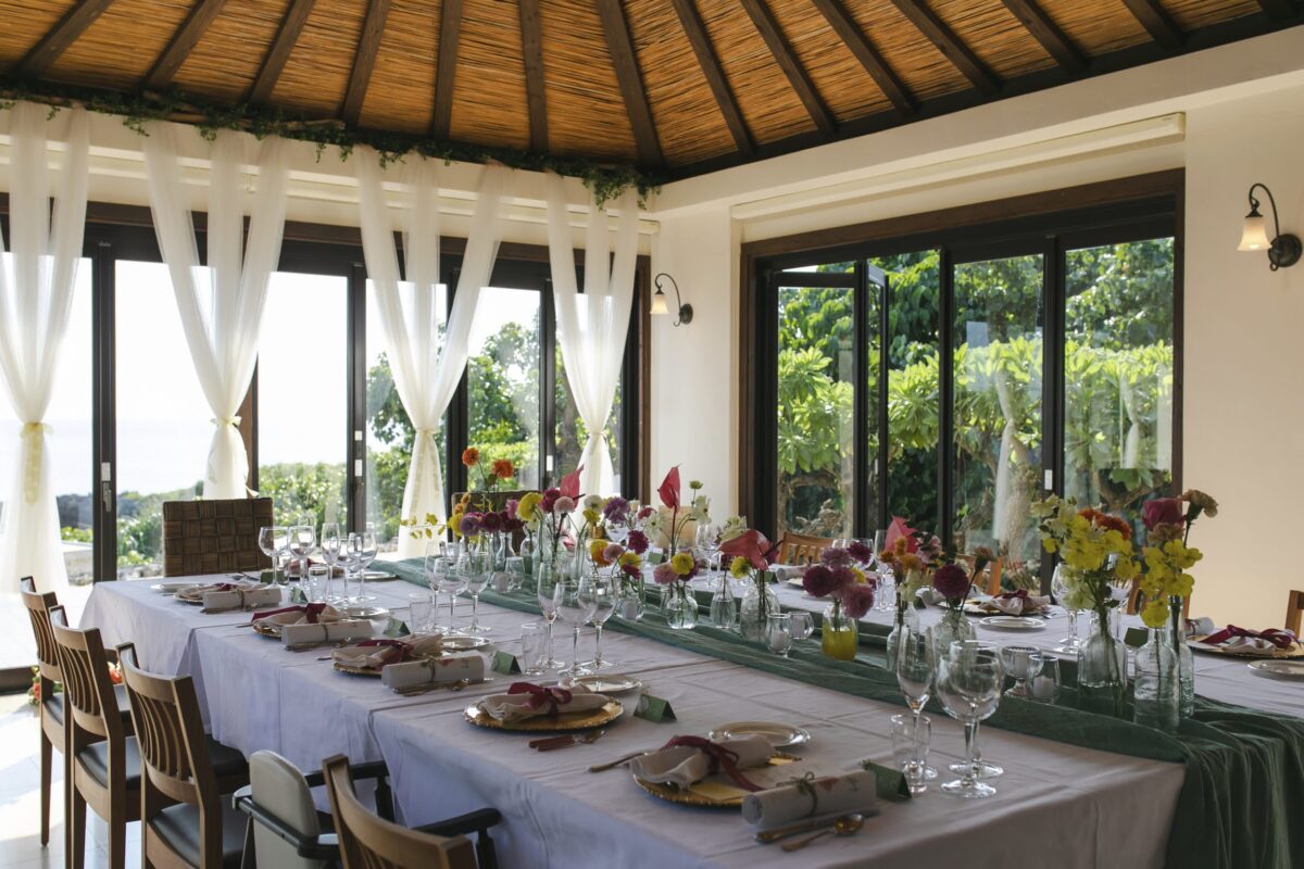 沖縄の民家の雰囲気たっぷり赤瓦のヴィラでの宿泊がセットになったウェディングです。