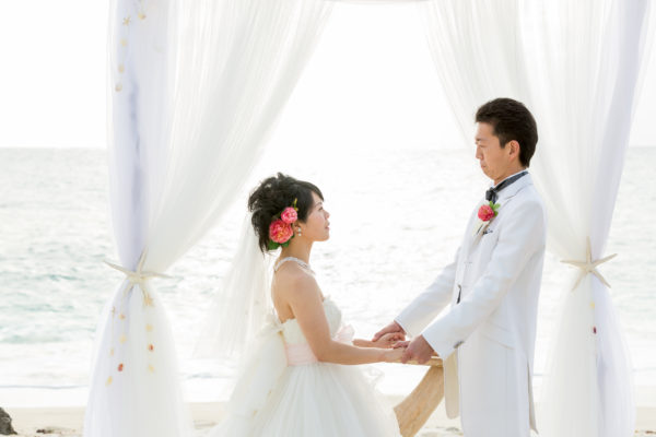 宮古島の青い海に愛を誓う