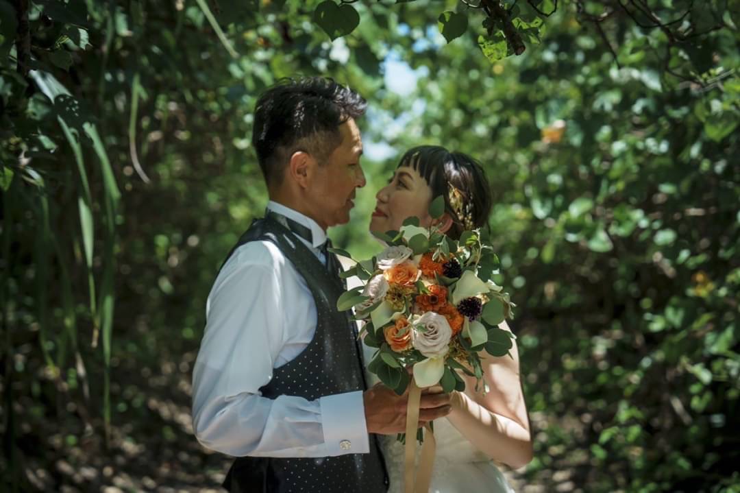 ブーケもガゼボもかわいいオレンジで仕上げて頂き、ドレスもアクセサリーもヘアメイクも全てが可愛くて
